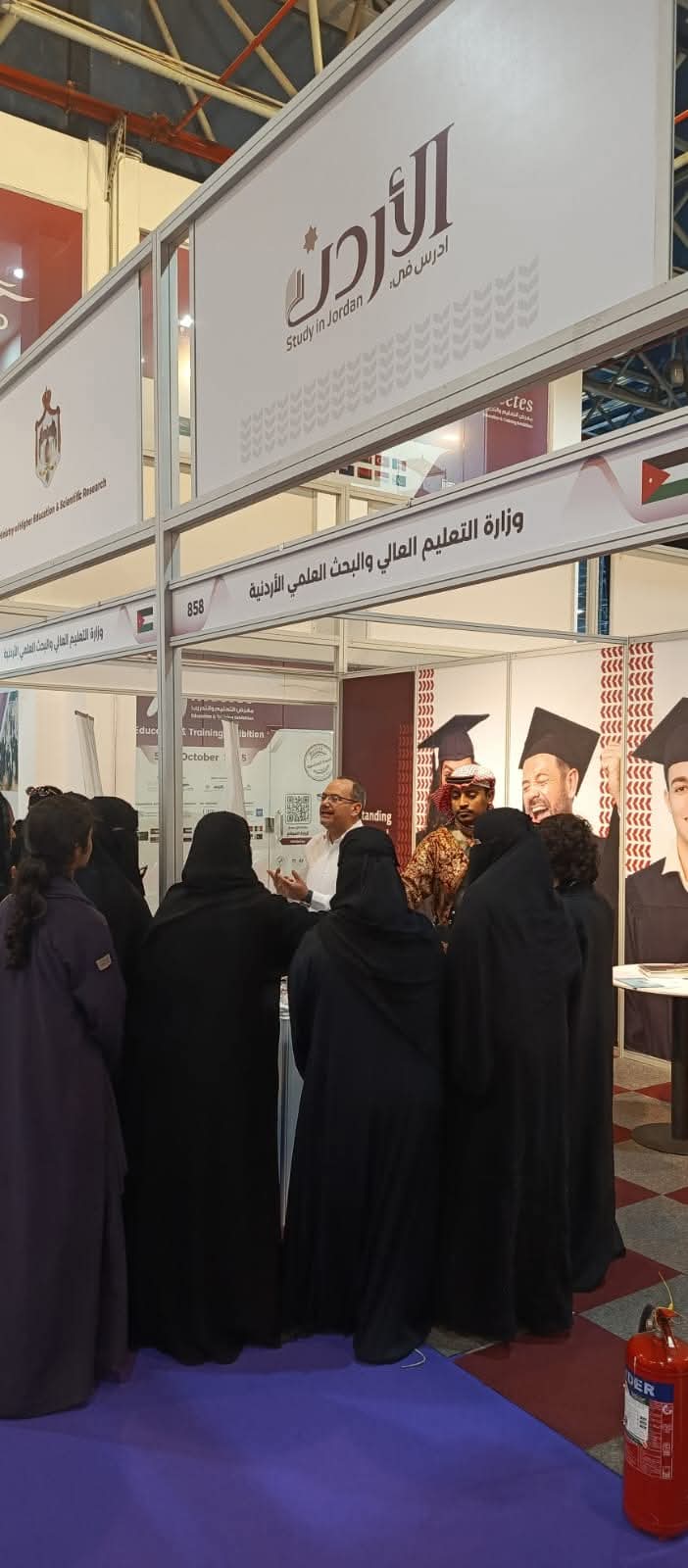It is worth mentioning that the Ministry of Higher Education and Scientific Research maintains a strategic partnership with the Jordan Tourism Board, which exerts tremendous efforts to support educational tourism in the Kingdom. Jordan’s participation in this exhibition comes as part of the implementation of the executive plan of the Strategy for Attracting International Students to Study at Higher Education Institutions in Jordan for the years (2023–2027), prepared by the Ministry of Higher Education and Scientific Research in cooperation and coordination with its strategic partner, the Jordan Tourism Board, and approved by the Council of Ministers. The strategy aims to enhance educational tourism in the Kingdom and increase the attraction of international students to study at Jordanian higher education institutions. The Ministry and Jordanian universities have participated, and will continue to participate, in a number of other exhibitions to be held in several countries during 2025.
